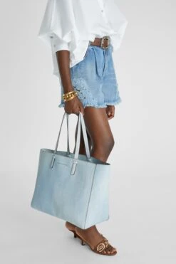ERMANNO SCERVINO Shopping Bag In Marocain Jeans Print With Internal Clutch