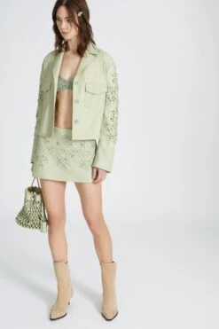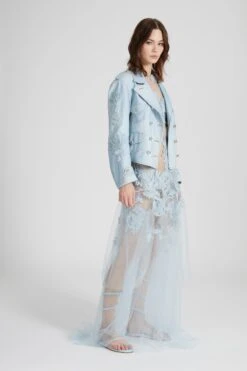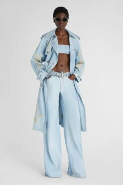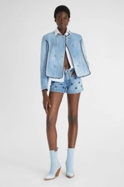 ERMANNO SCERVINO Denim Effect Quilted Double-breasted Jacket With Multicoloured Rafia Piping