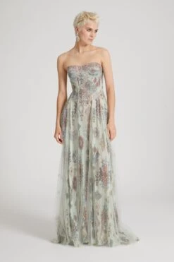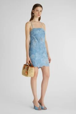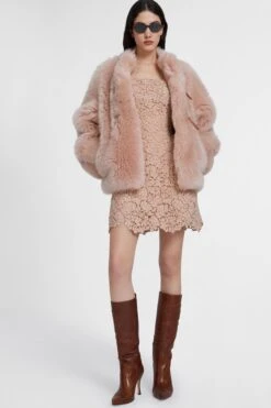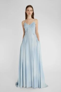 ERMANNO SCERVINO Long Pure Silk Pleated Kaftan With Handmade Lace Appliques And Buttoned Neckline