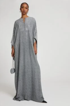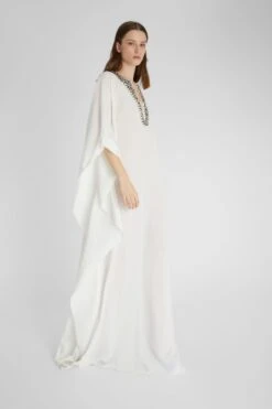 ERMANNO SCERVINO Long Pure Silk Kaftan With Neckline Embellished With Crystal And Pearl Appliques