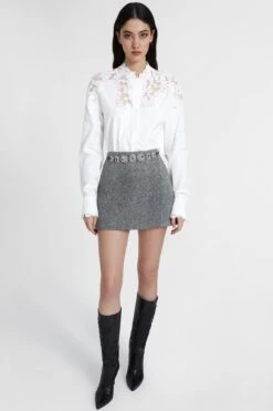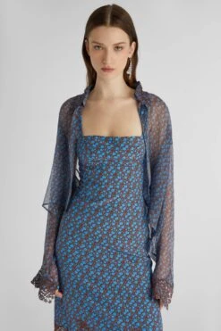 ERMANNO SCERVINO Pure Silk Chiffon Shirt With Micro Flower Print And Valencienne Lace Details