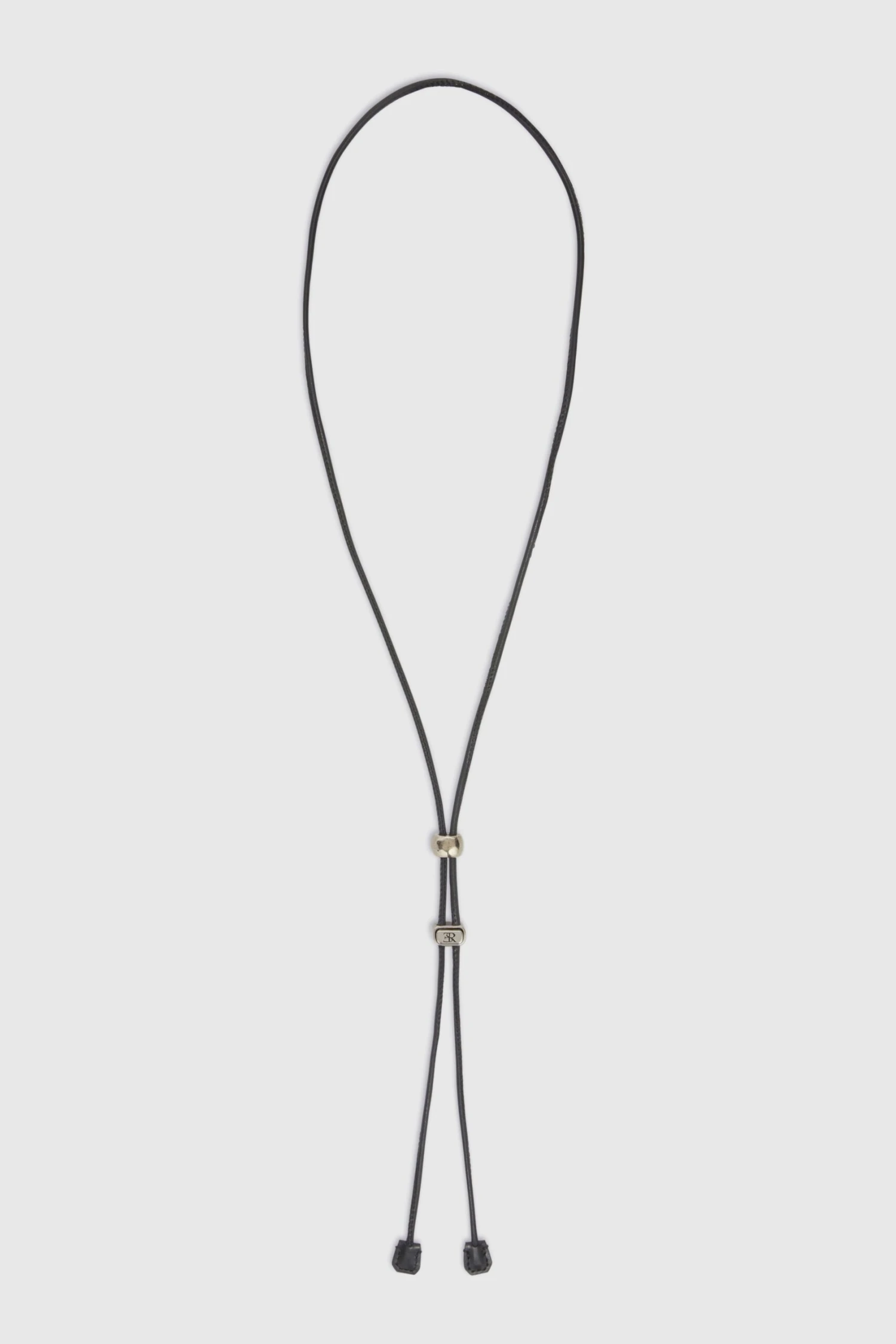 Leather necklace adjustable thanks to two metal loops in silver galvanic with logo.