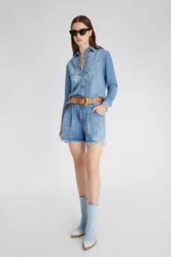 ERMANNO SCERVINO Short Single-breasted Shearling With Floral Hand-embroidery In Contrasting Colours