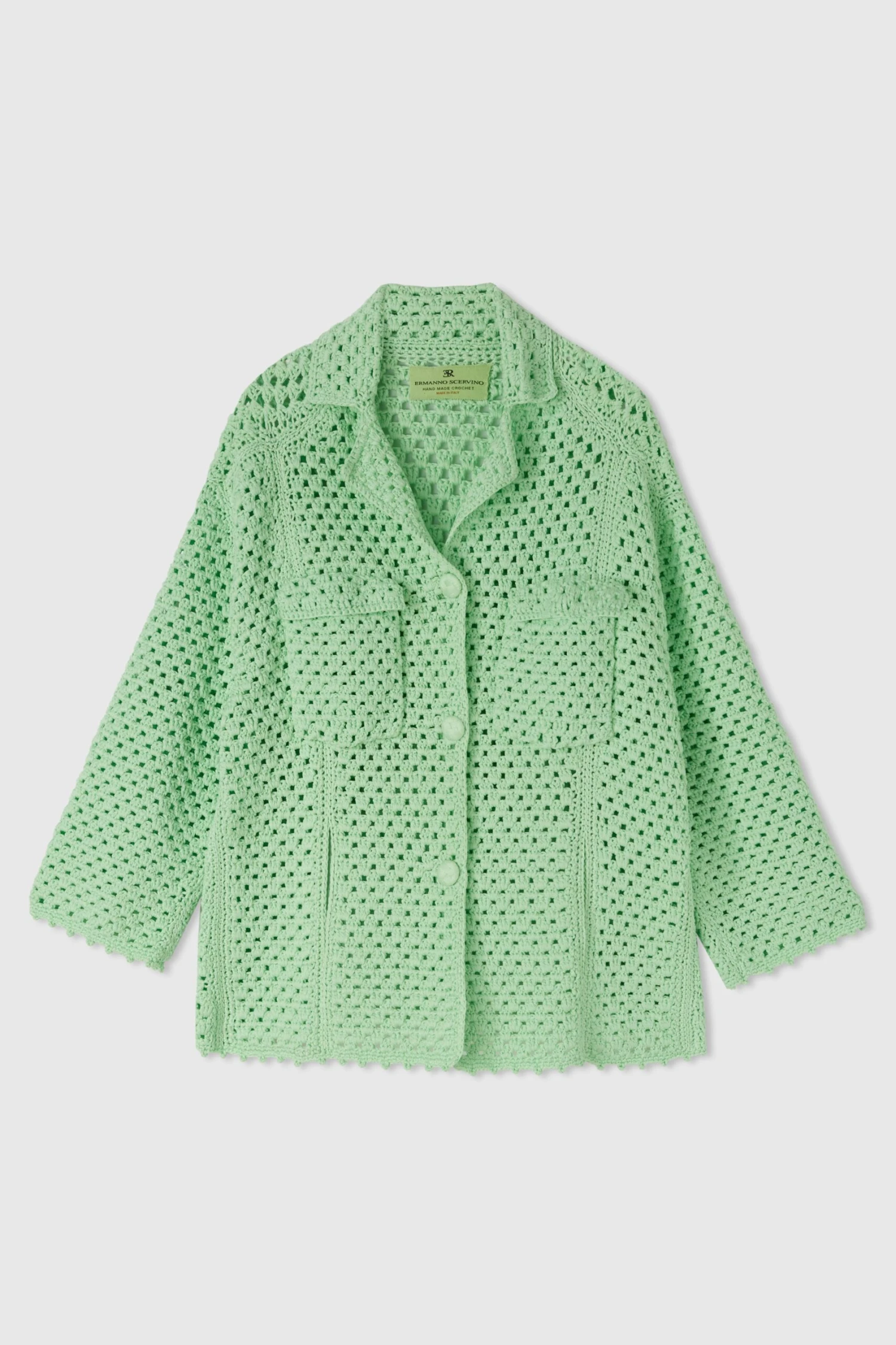 ERMANNO SCERVINO Caban In Crochet Cotton Knit, Buttons And Front Pockets