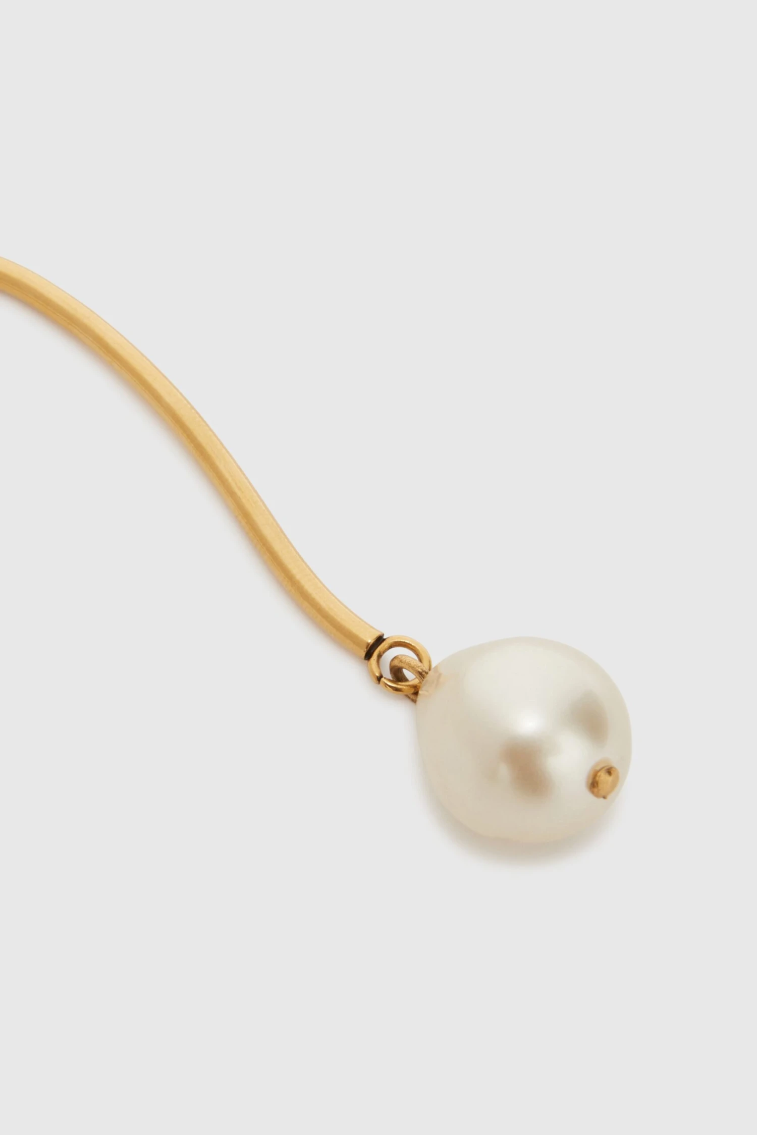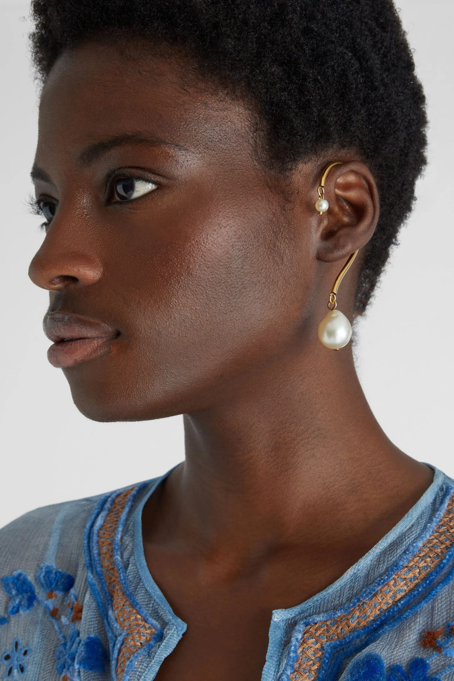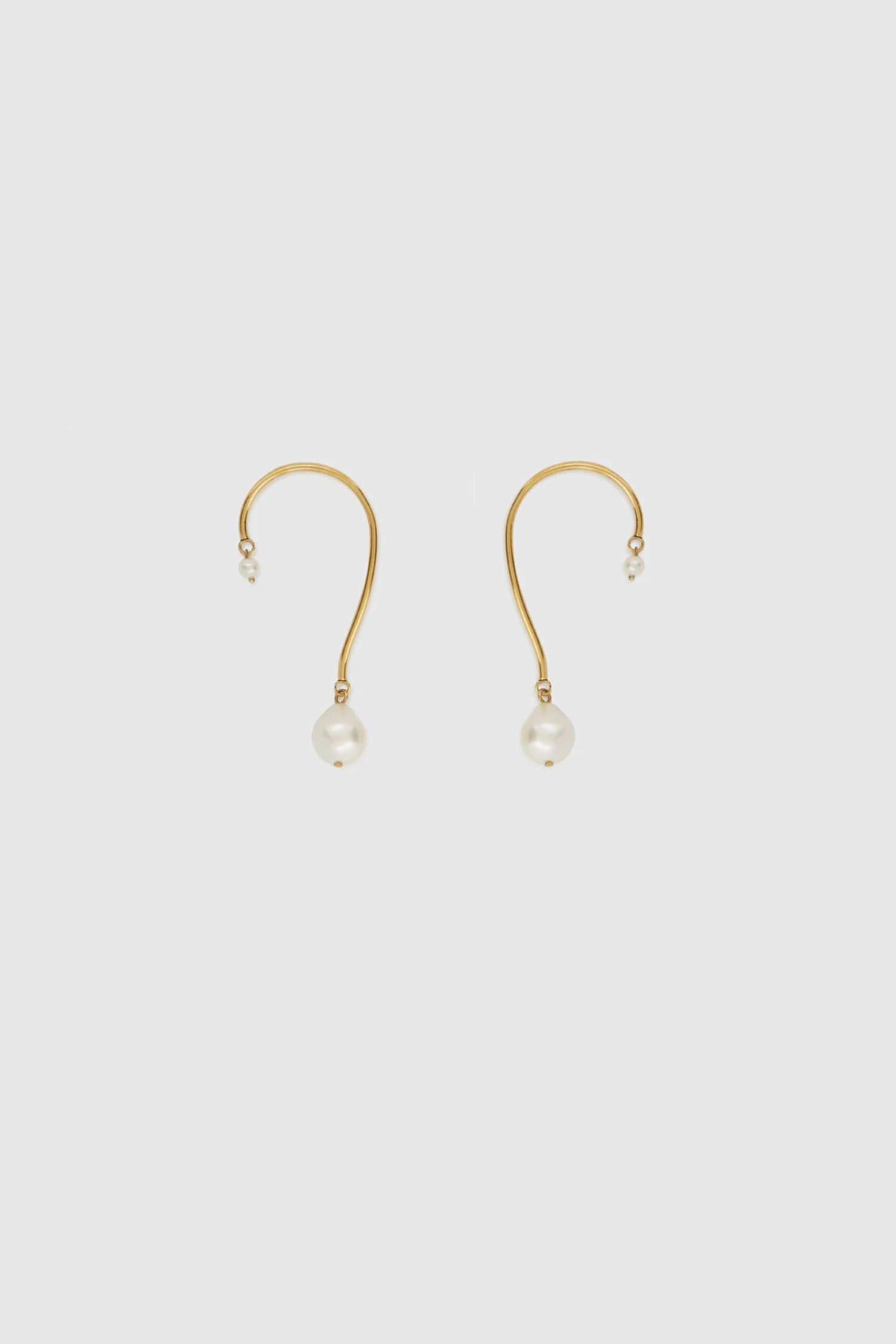 Brass ear cuff with gold galvanic finish and natural pearl at the bottom.