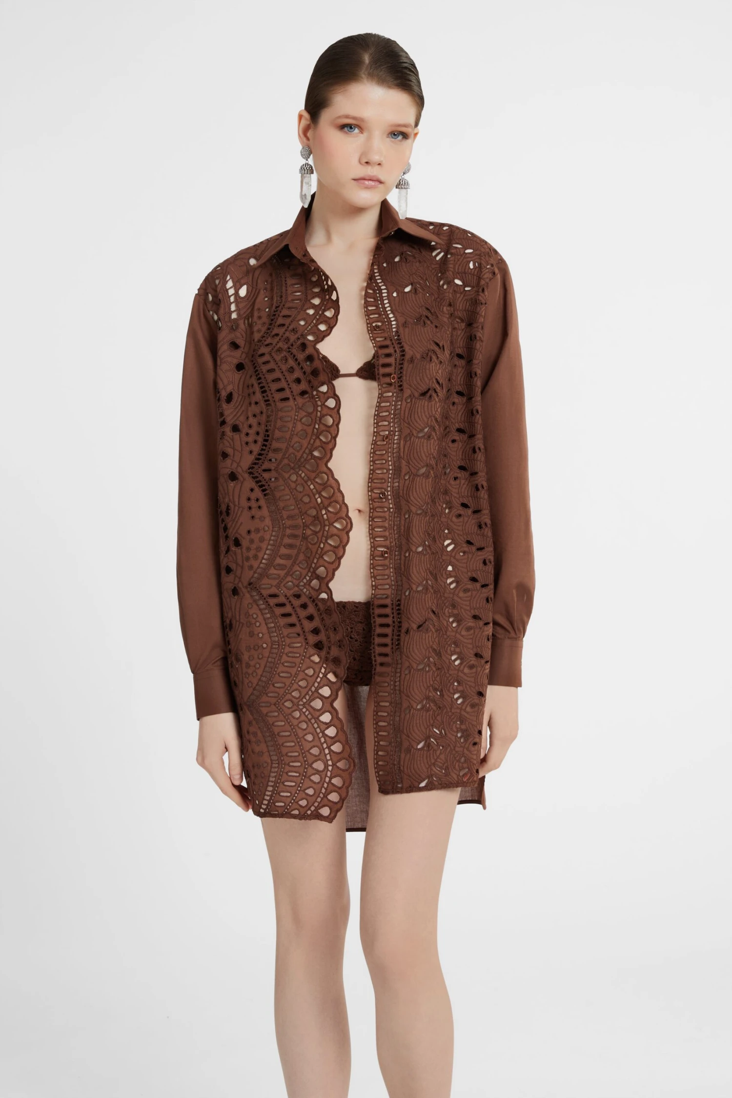 ERMANNO SCERVINO Macrame Lace Triangle Bikini In Cappuccino Colour