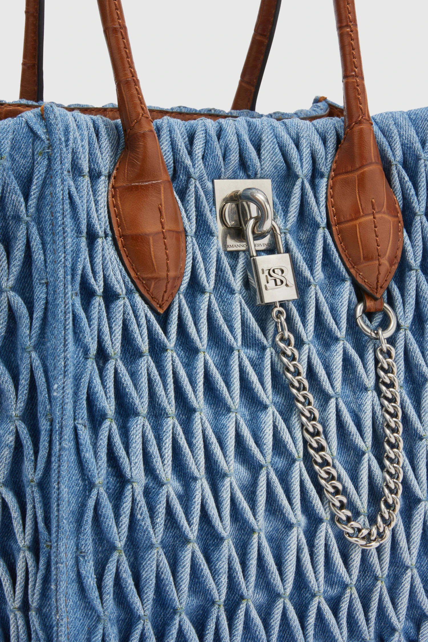 ERMANNO SCERVINO Maggie Media In Denim With Handmade Smock Stitch Work