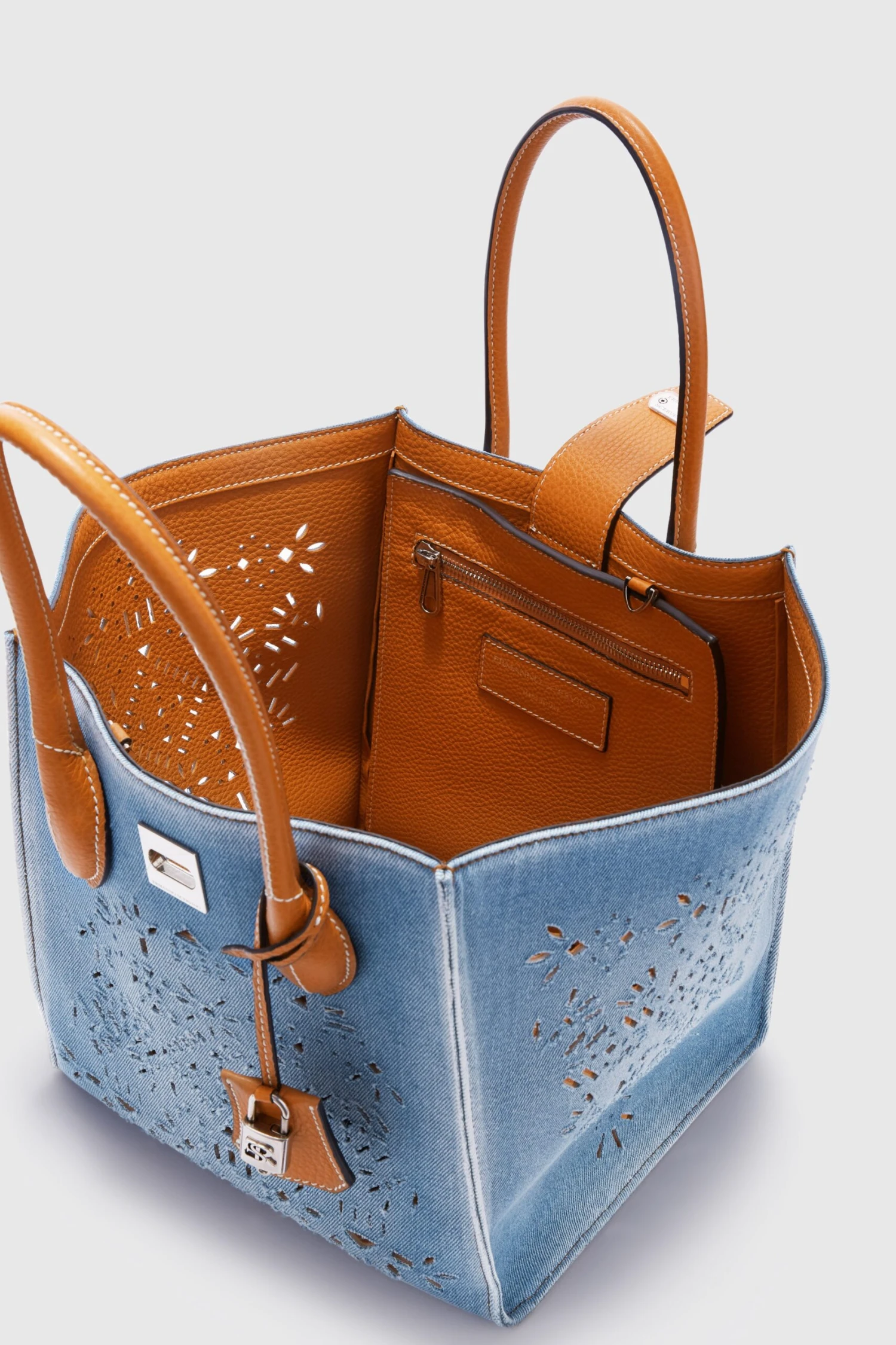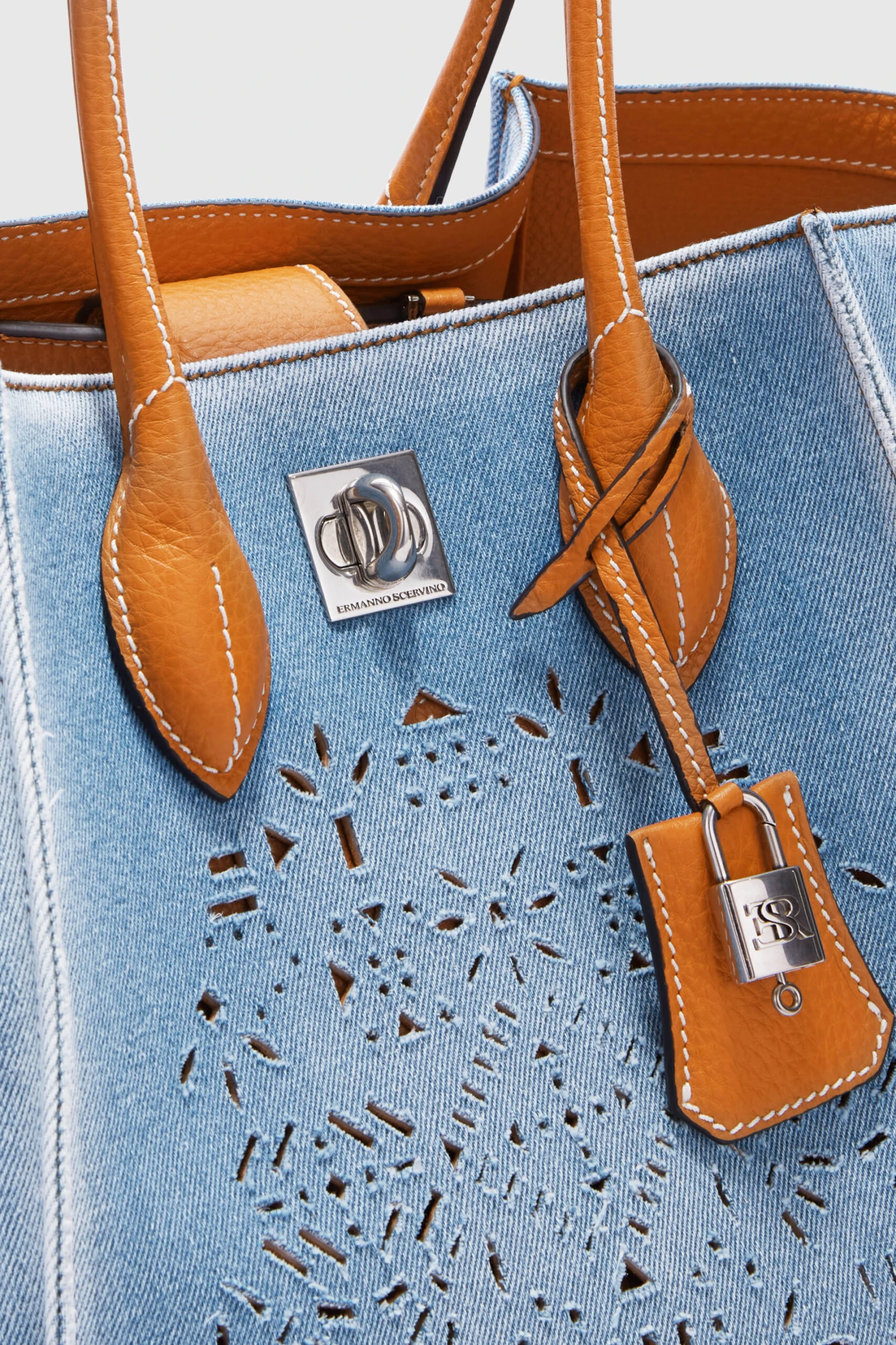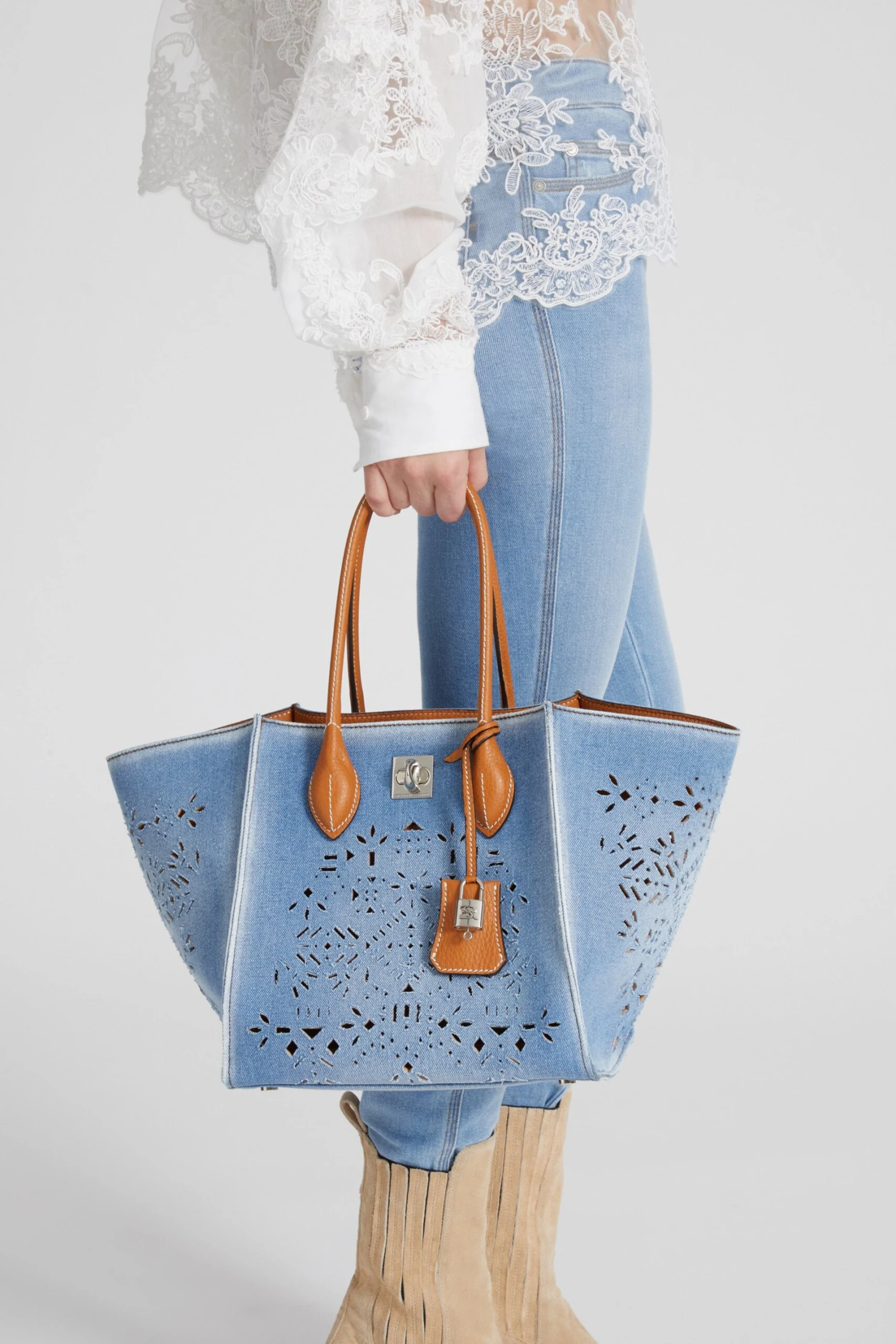 ERMANNO SCERVINO Medium Maggie In Denim With Handmade And Hand-finished Geometric Cut-out
