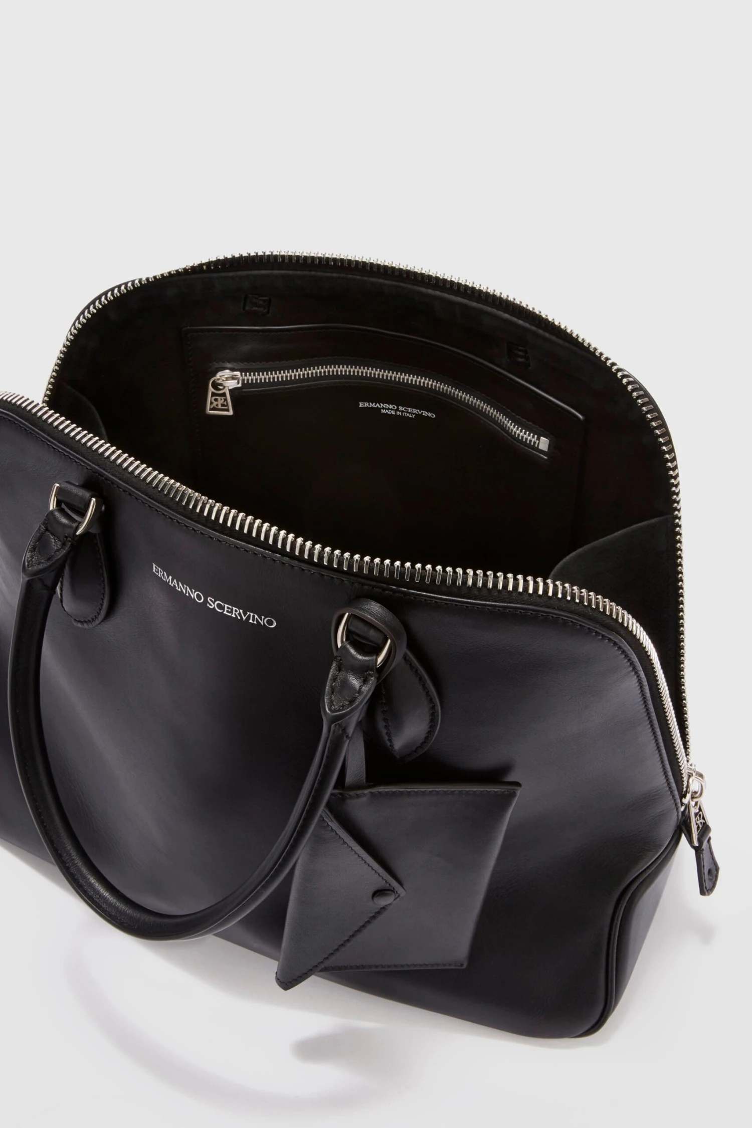 The Orsetta bag in smooth calfskin combines refinement and practicality, designed for those seeking a sophisticated and timeless style. The 11 grain zip closure, delicate to the touch, expresses luxury and quality. The body of the bag, made of smooth calfskin, gives a soft and precious effect, while the external purse attached to the handle adds a functional and stylish touch. The interior, lined in tone-on-tone suede, highlights the attention to detail and the quality of the materials. With its generous dimensions, this bag is ideal for those seeking space and style in a single accessory.