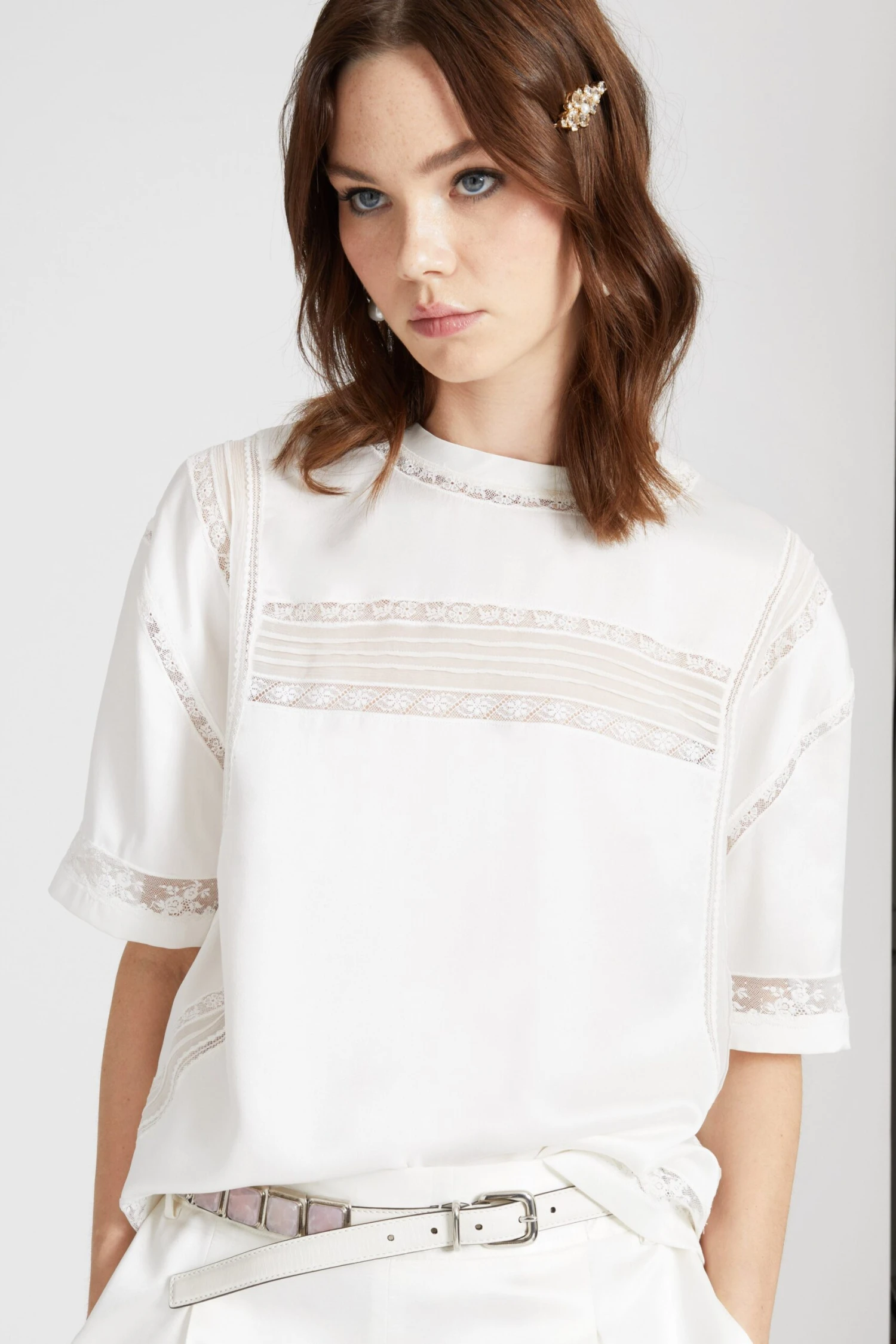 ERMANNO SCERVINO Oversize Silk T-shirt With Valencienne Lace Details