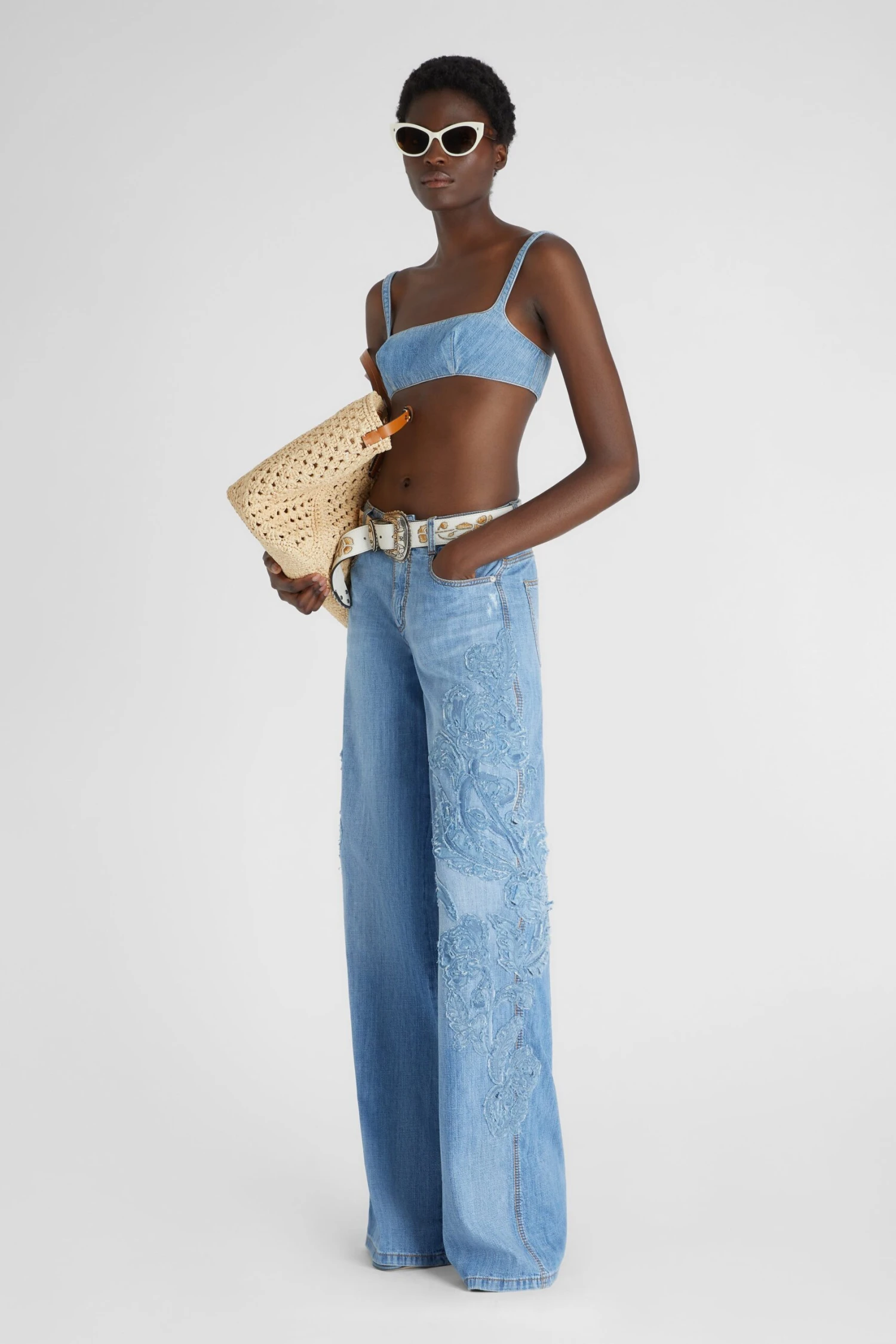 ERMANNO SCERVINO Palazzo Jeans With Handmade Denim Lace Application