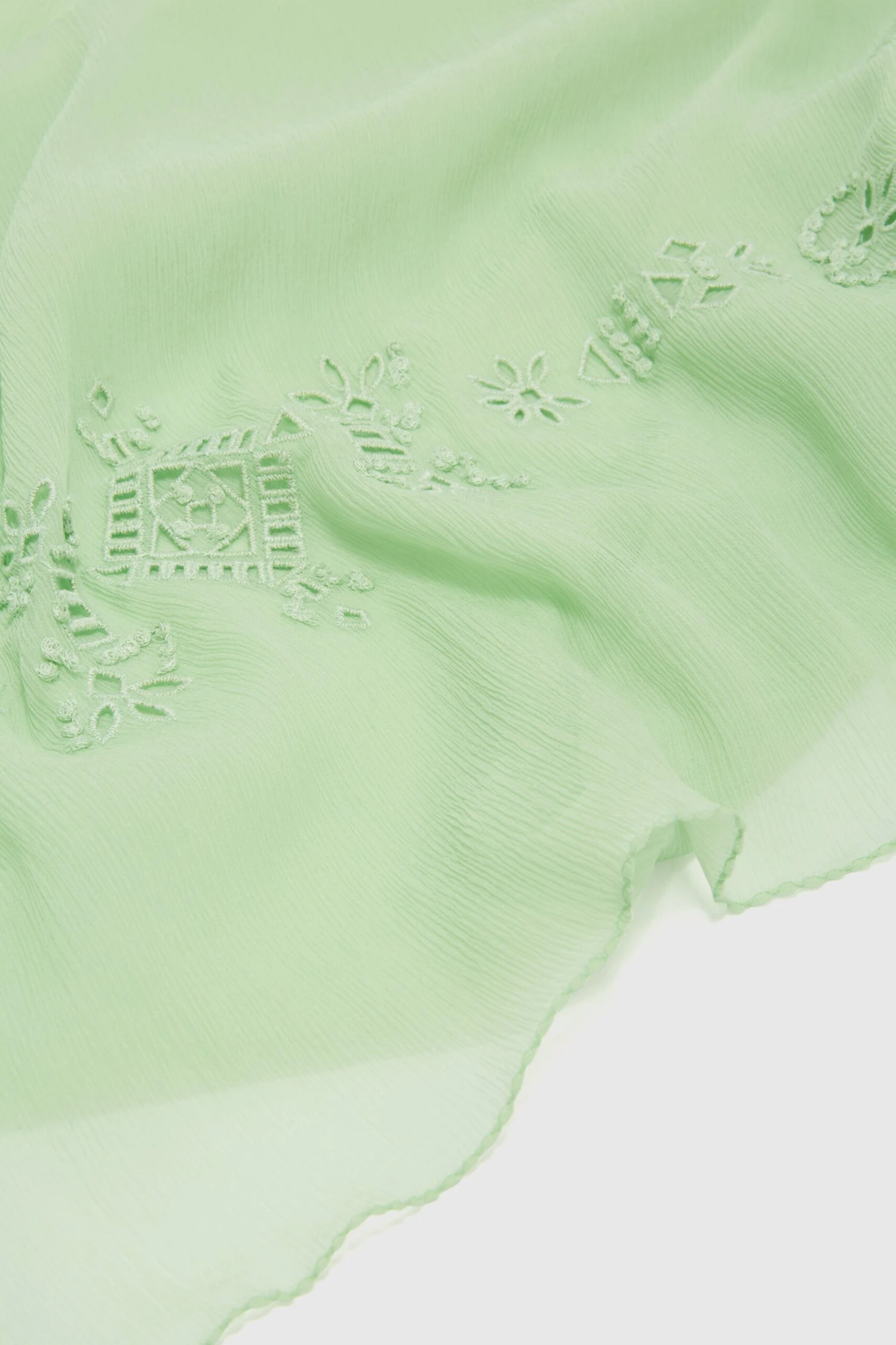 Pure silk chiffon stole with geometric carvings with jour effect on the bottom, completely made and finished by hand.