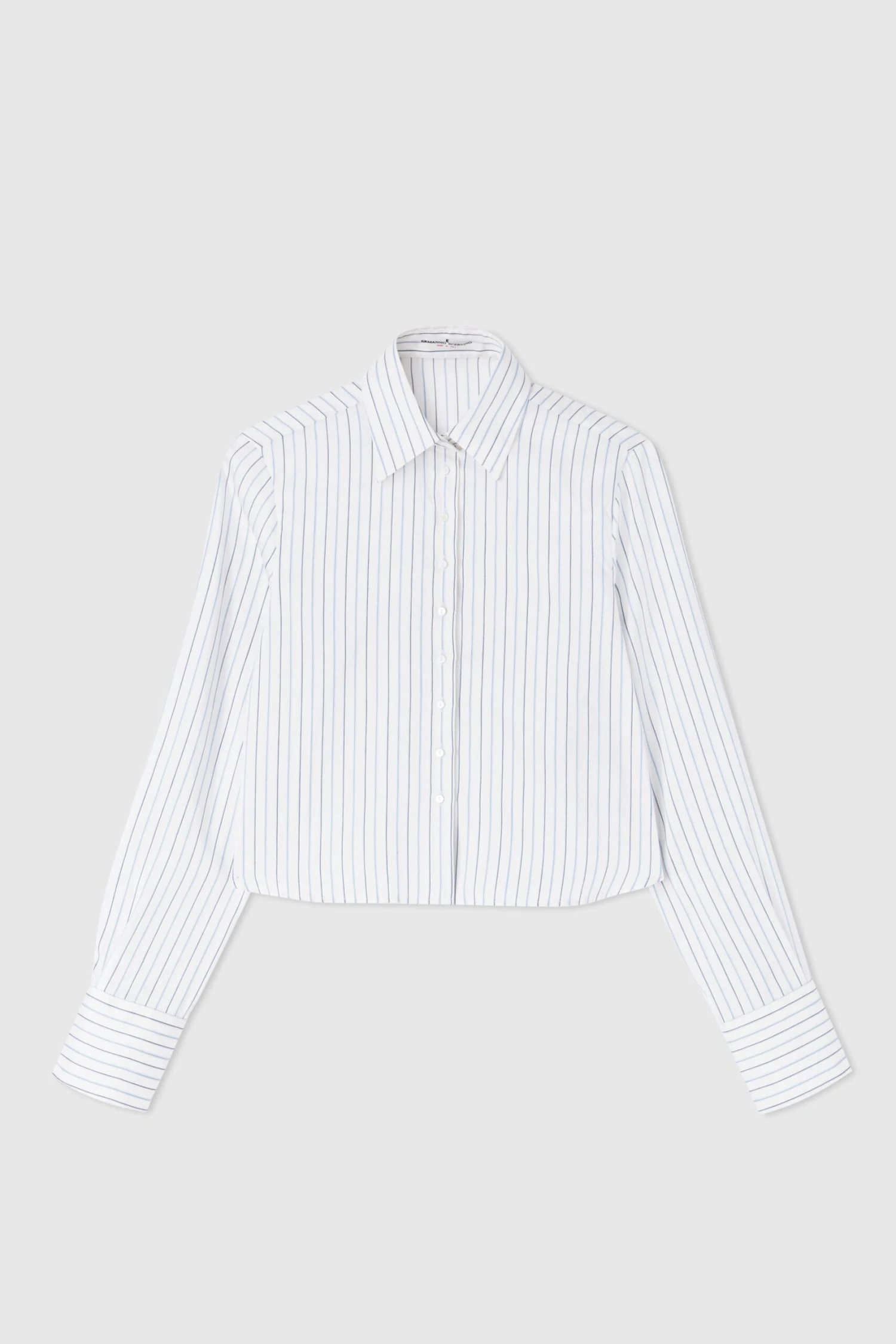 Micro-stripes print silk crop shirt, cropped but regular cut, with long sleeves.