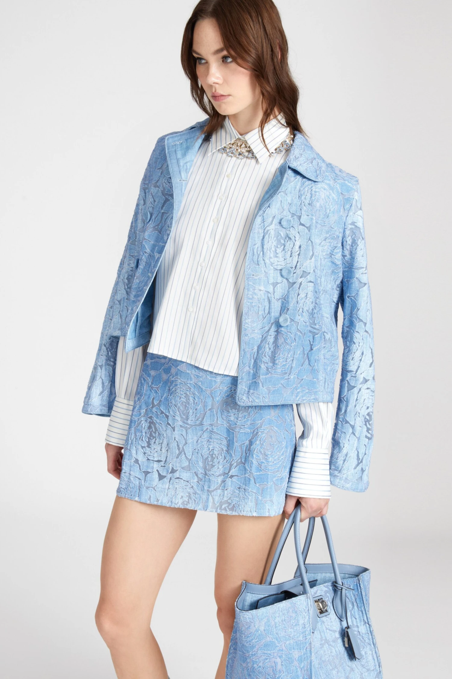 ERMANNO SCERVINO Silk Blend Micro-striped Crop Shirt