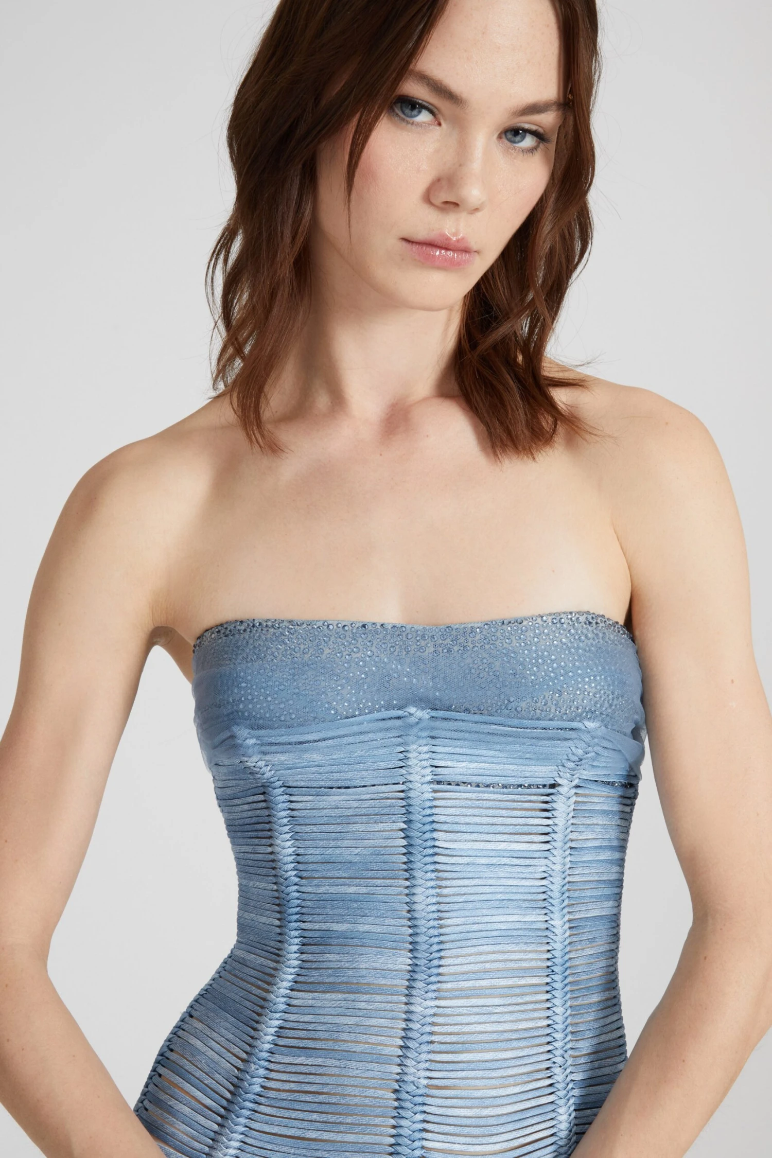 ERMANNO SCERVINO Silk Midi Bustier Dress With Crystals In Soutache Technique