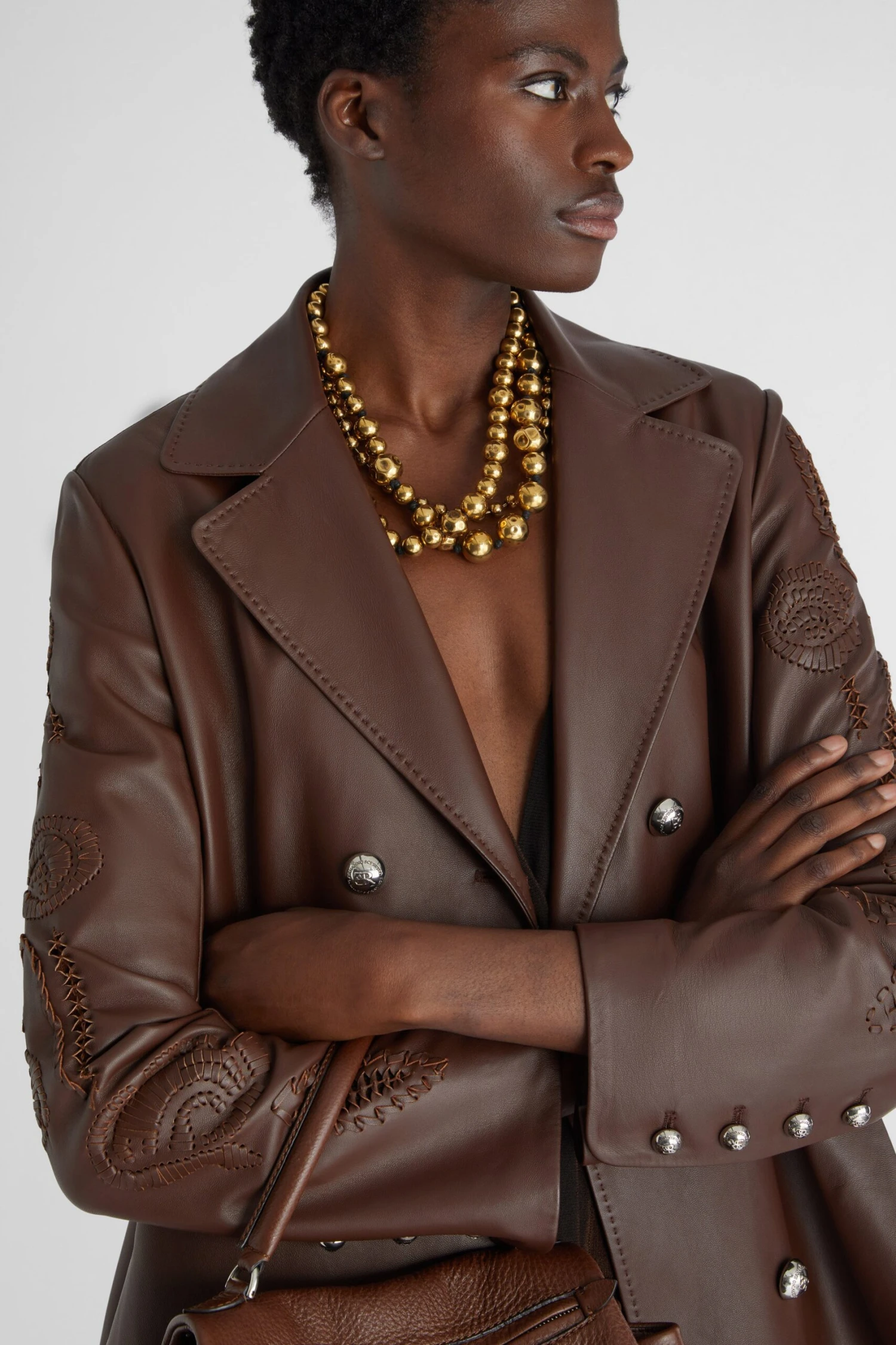 ERMANNO SCERVINO Single-breasted Leather Jacket With Handmade Embroidery And Carvings