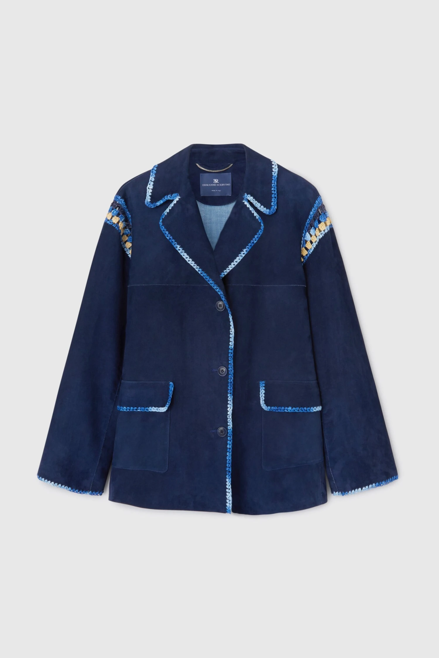 Be the first to review “ERMANNO SCERVINO Single-breasted Suede Jacket With Hand-woven Multicoloured Rafia Details” Cancel reply