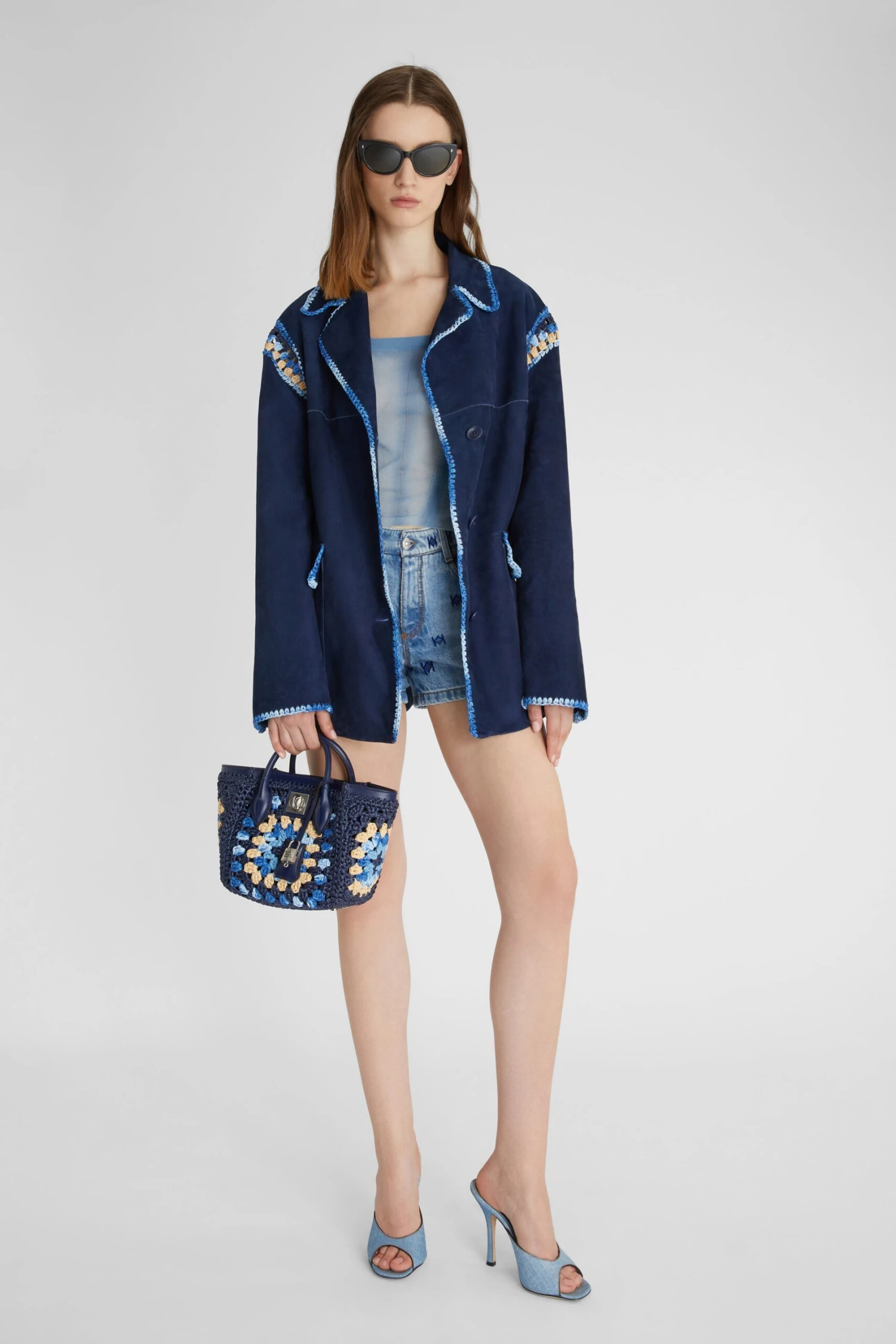 ERMANNO SCERVINO Single-breasted Suede Jacket With Hand-woven Multicoloured Rafia Details