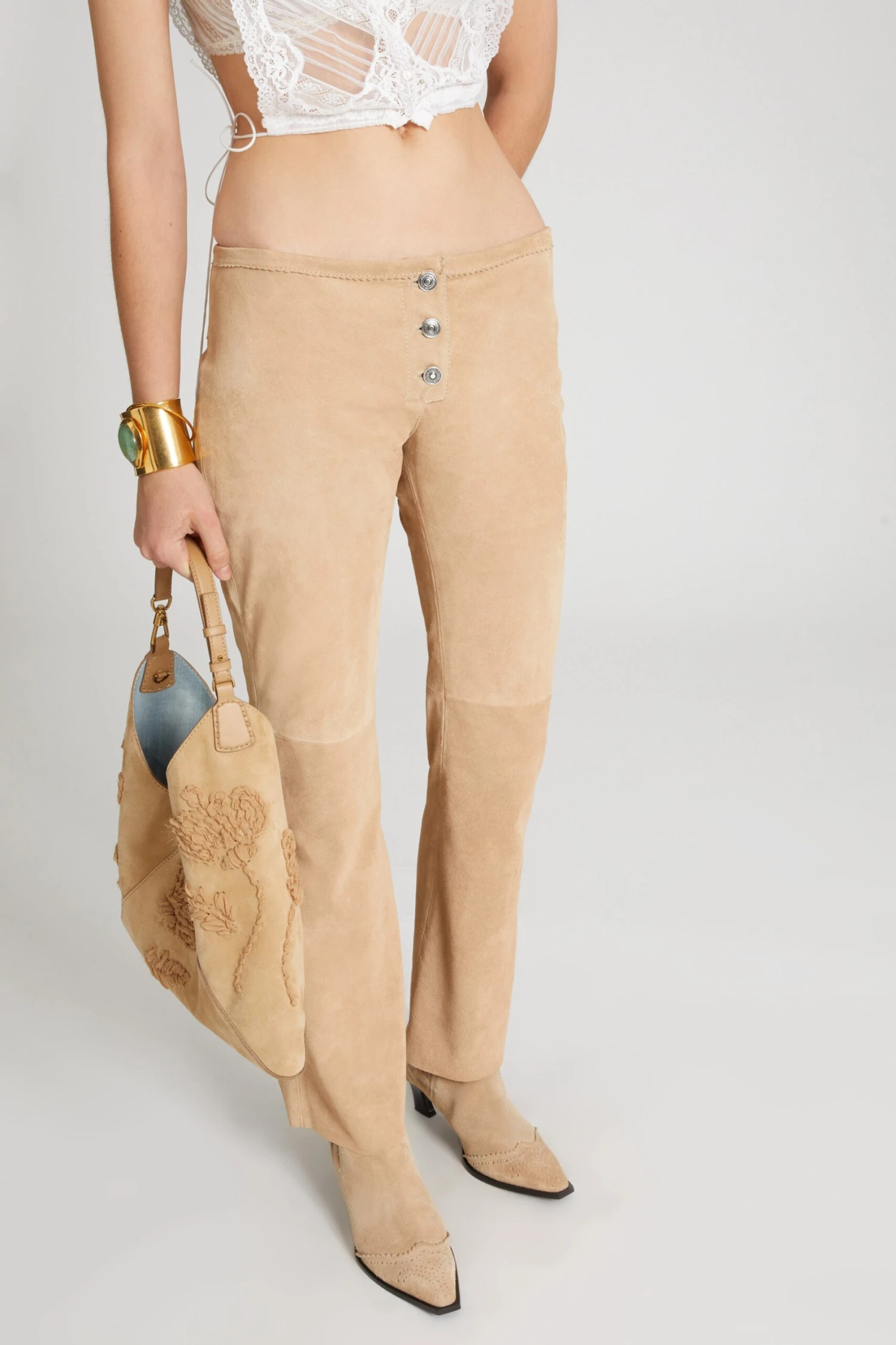 ERMANNO SCERVINO Straight Trousers In Clouded Suede With Buttons.