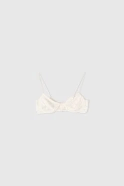 Structured bra with cups and fine shoulder strap, concealed back zip fastening. The top is handmade using the special soutache technique: a flat silk tape cord is created and sewn, twisting it onto itself. The final effect is the result of manual work aimed at assembling all the flat cords that make up the garment.