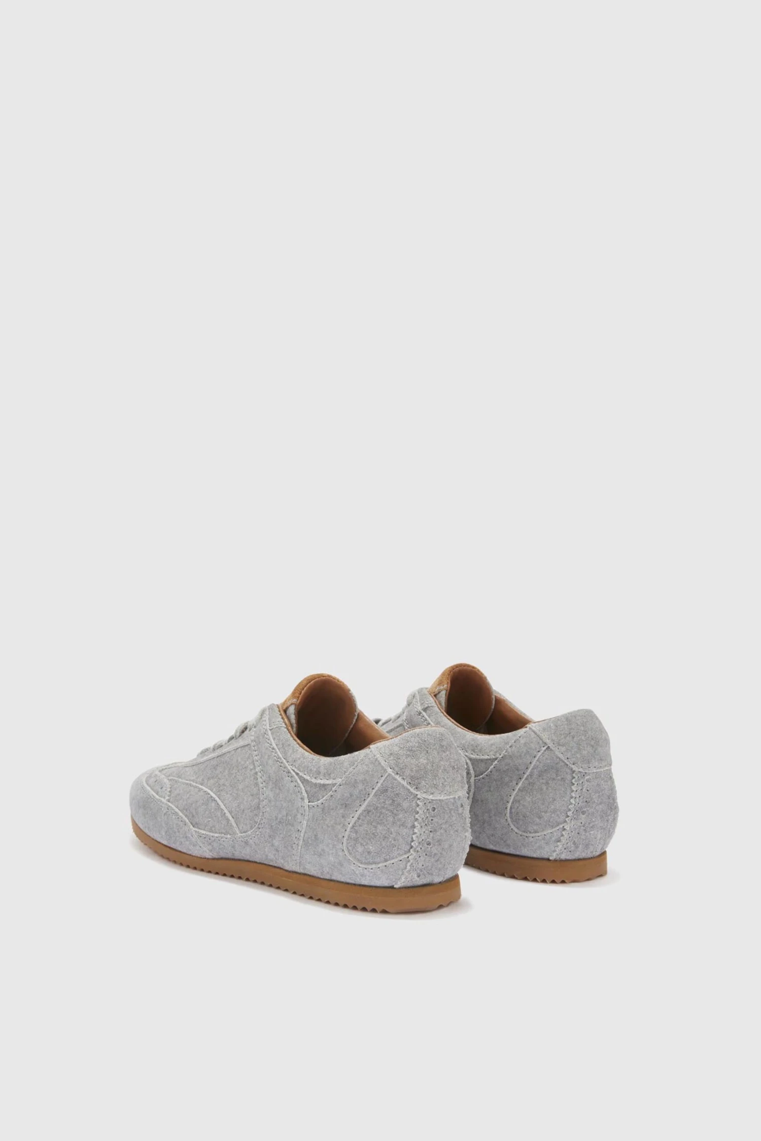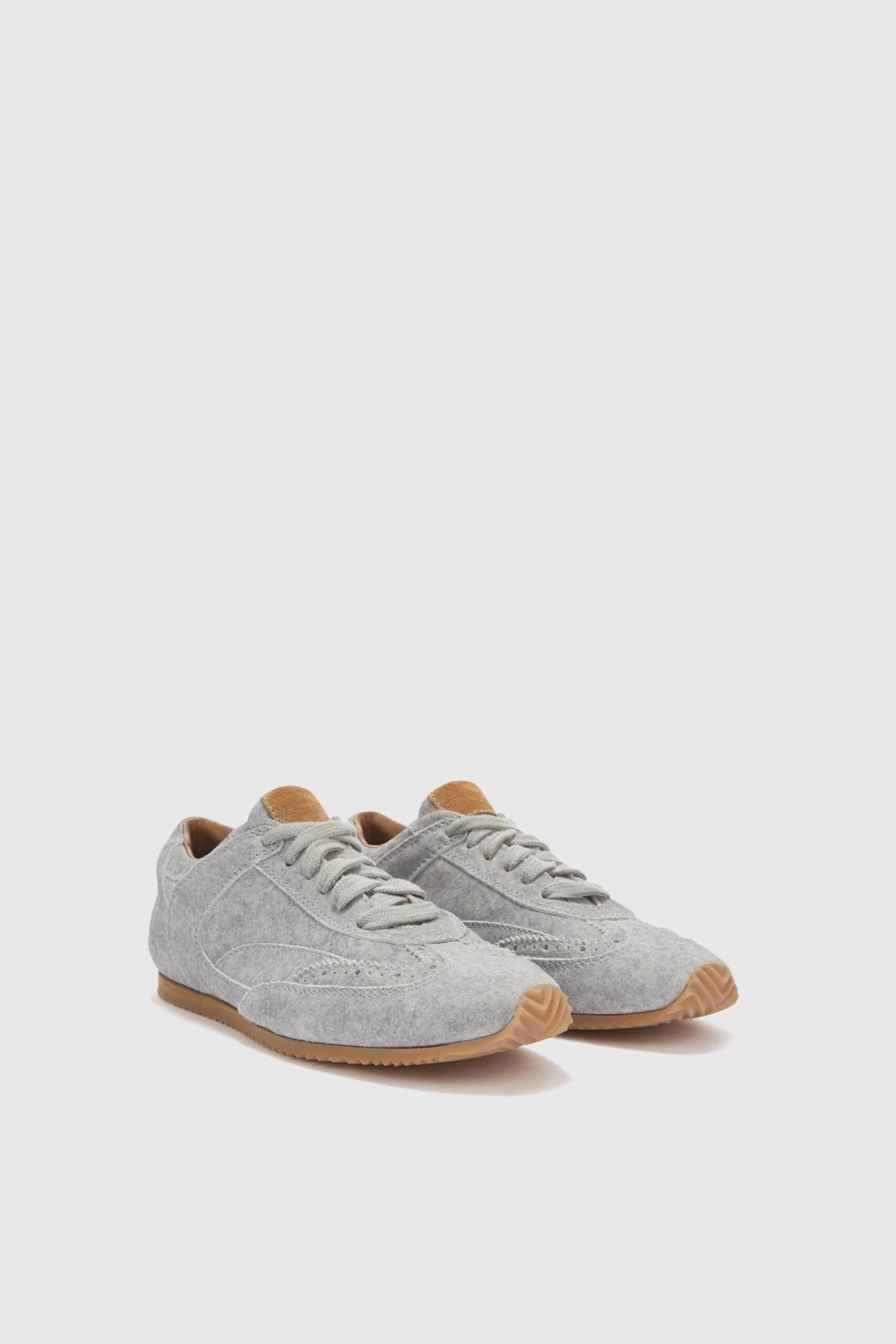 The sneaker Winner in split leather with cloth effect print, combined with an amber rubber sole, combines sophisticated style and comfort. Finished entirely by hand, it features the fine brogue motif on the toe and heel, enriched by the swallowtail profile. The soft rubber of the sole and the padded insole offer optimal comfort, making it the perfect choice for those seeking a casual yet sophisticated look.