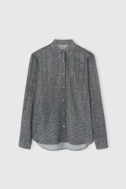 Made of pure viscose, this shirt combines lightness and sophistication with a timeless design. The herringbone pattern in warm brown and beige tones lends depth and character to the garment, while hand-applied crystals embellish it with delicate highlights. Matching front summarys complete the look with discretion and colour continuity. A sophisticated model, perfect for emphasising even the most essential outfits. Details: