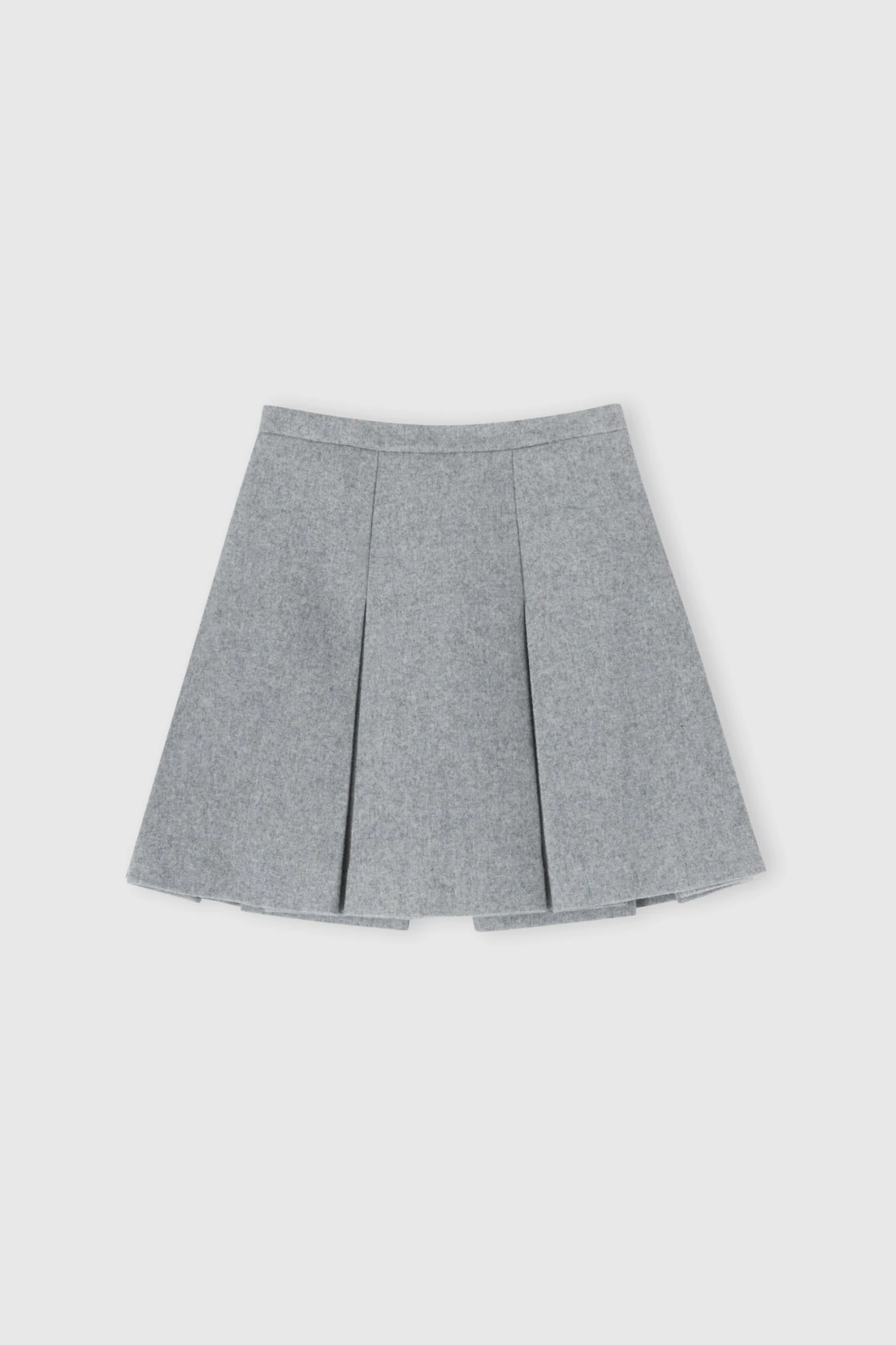 With a fresh and contemporary design, this wool blend mini skirt features an A-line silhouette and soft pleats that add movement and lightness to the silhouette. The compact yet fluid fabric ensures an impeccable fit, while the high waist elegantly highlights the figure.