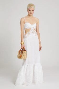 ERMANNO SCERVINO Long Pure Linen Chemisier With Handmade Embroidery And Macrame Lace Appliques